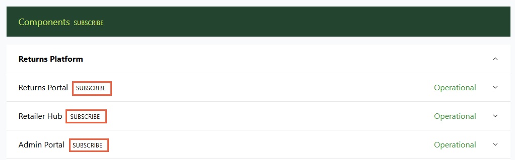 The ZigZag Status Page has been designed to allow users to view and subscribe to alerts reporting on issues affecting the Returns service.